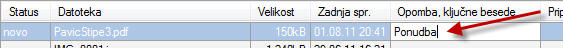 Vsak dokument po želji opremimo s kratkim opisom (opombami, naslovom, ključnimi besedami): vse z namenom lažjega iskanja po arhivu in shranjevanja dodatnih informacij o dokumentu. Spremno besedilo lahko vnesemo preko hitrega menija (izberemo Opombe in ključne besede...), ko se za vnos odpre posebno okno, lahko pa ga vpišemo neposredno v polje Opombe in ključne besede: